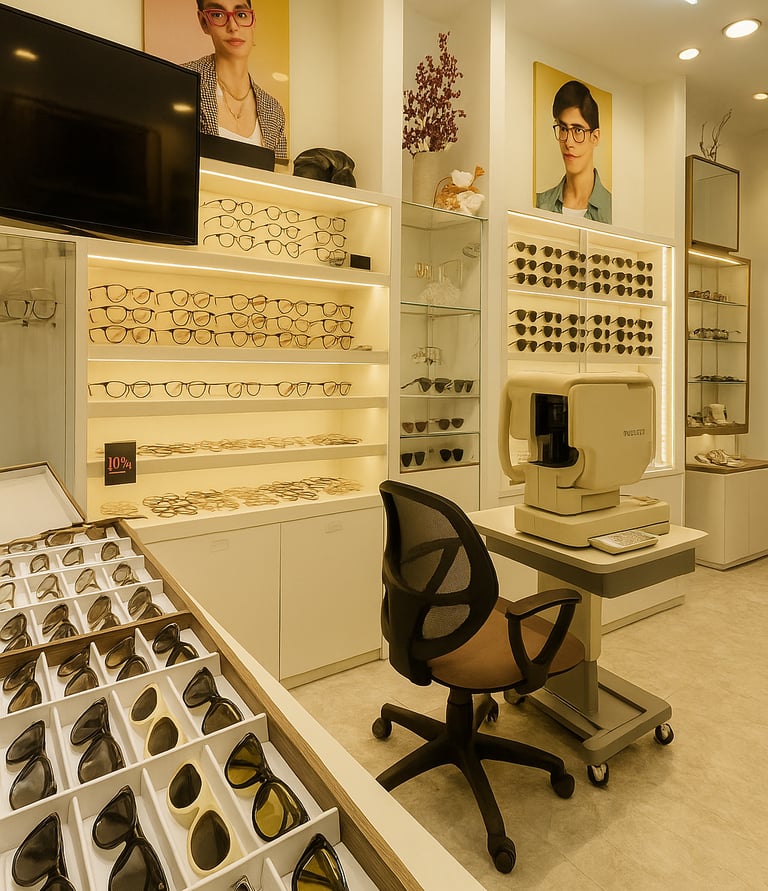 Cửa hàng mắt kính Poshop, phục vụ tận tâm với mẫu mã đa dạng và dịch vụ đo mắt miễn phí.